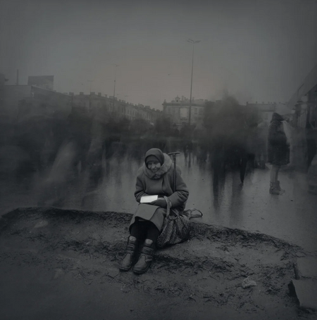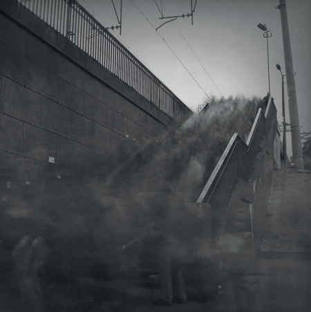 Александр Титаренко создал серии о жизни людей в кризисный период. Чтобы показать связь настоящего с прошлым, он использовал длинные выдержки и движение камеры, превращая уличную фотографию в метафору времени. Работая с широкоформатным аналоговым аппаратом, он сам проявлял плёнки и печатал снимки на баритовой фотобумаге, применяя отбеливание, тонирование и соляризацию. Эти приёмы придавали фотографиям призрачный, «замедленный» характер, создавая ощущение другого измерения, где тени людей растворяются в пространстве. [7]