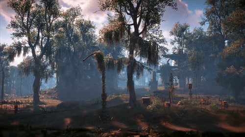 Вступительный эпизод Horizon Zero Dawn, когда управляемая игроком Элой, прокладывает себе путь через темную пещеру, следуя за тонкими потоками света сверху, которые освещают путь к безопасности.