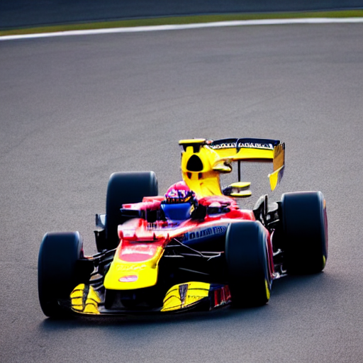 Обучение модели Stable Diffusion с применением LoRA-адаптации по набору изображений машин формулы 1, чтобы модель могла создавать новые оригинальные изображения гоночных болидов.