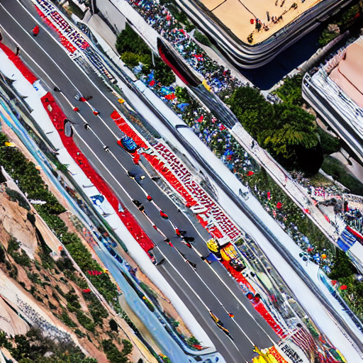 Модель научилась создавать композиции с перспективой — трасса уходит вдаль, присутствует ощущение пространства и скорости.