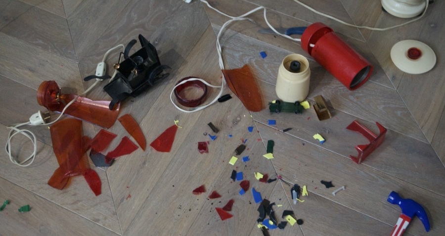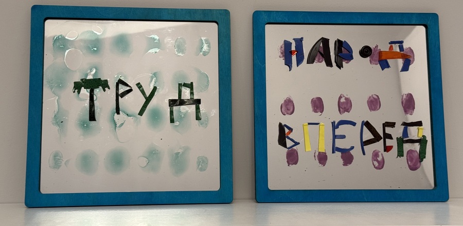 Работы созданы с использованием фрагментов советской бытовой техники — блендеров, кофемашин — и игрушечных машинок, намеренно разрушенных и превращённых в осколки. Эти элементы размещены поверх зеркальной поверхности в виде лозунгов, перекрывающих отражение.