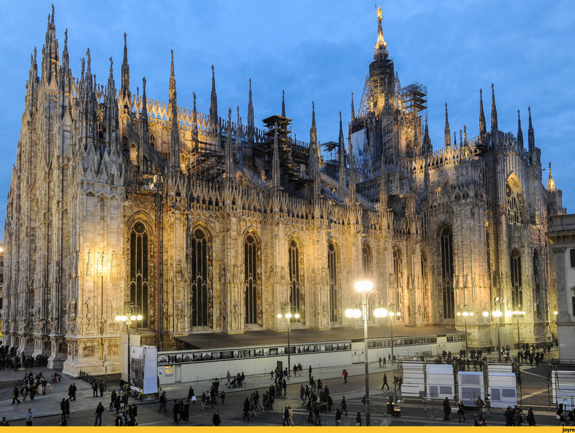 Миланский собор — один из самых известных примеров готической архитектуры в Италии. Строительство собора началось в 1386 году и продолжалось более 600 лет. Собор выделяется своим величественным фасадом, украшенным множеством скульптур и витражей.