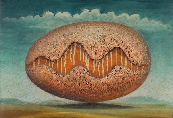 Образ яйца действительно часто появляется у Юло Соостера как в картинах, так и в иллюстрациях. Он словно хочет досконально изучить эту форму, используя ее и как часть иллюстрации и как что-то идеальное, содержащее в себе великую тайну зарождения жизни.