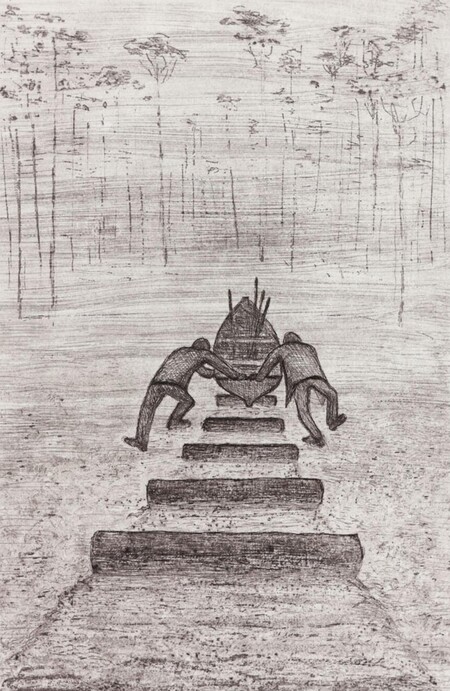 Река Эрма, 1957–1959 гг. / Иллюстрация к произведению «Шесть гениев» С. Гансовского, 1965 г.