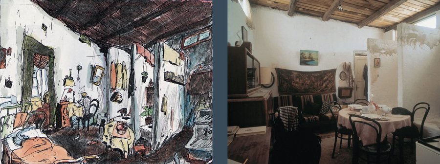 Кабаков начинал именно как иллюстратор. Только через некоторое время он стал работать как самостоятельный художник. Но рассматривая его эскизы к инсталляциям, несложно заметить тот самый выработанный стиль художника, который присутствует и в его иллюстрациях. Можно заметить, что Кабаков сперва делал «настроенческий» (если хотите, художественный эскиз), куда вкладывал основную идею. Такие эскизы можно назвать настоящей иллюстрацией, так как учтены все законы композиции, видны цветовые решения и стилистика автора. В таких эскизах есть пространство, в него интересно погружаться и находиться в нём. И именно такой эскиз наиболее полно и «красочно» отражал замысел художника. После создавались дополнительные технические чертежи с размерами. Они уже просто черно-белые, без лишней цветовой нагрузки.