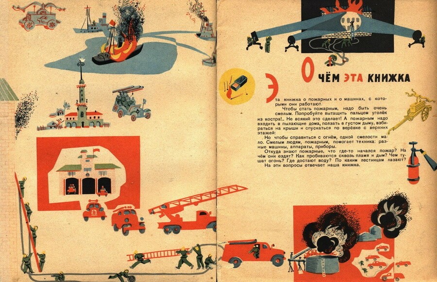 Иллюстрации к книге «Рассказы о красных машинах» В. Порудоминского, 1961 г. (Сделаны в сотворчестве с Ю. Игнатьевым)