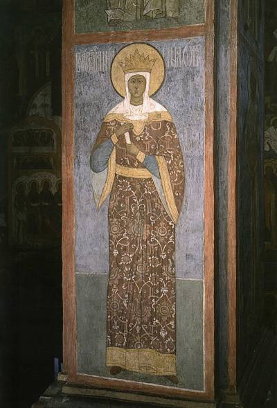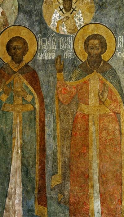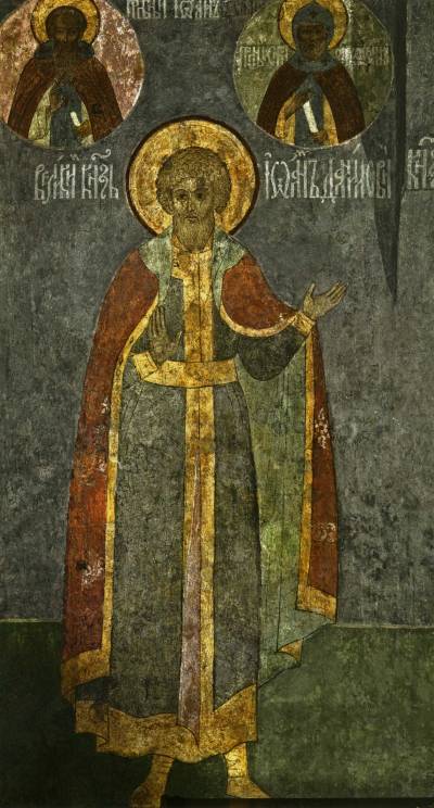 На втором фото представлена фреска с изображением Ивана Калиты. Здесь правитель изображен в иконе, что было характерно для того времени, так как считалось, что князья — посланник Бога. Фреска изображается по византийским канонам в религиозном стиле и совсем не несет светский характер.