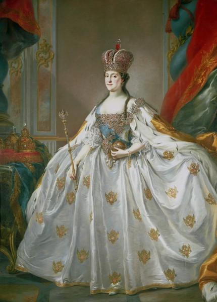 На втором фото представлен парадный портрет Екатерины II. Этот стиль появился в Петровскую эпоху, можно заметить, что в отличие от парсуны, здесь вообще отсутствуют элементы иконописи, портрет полностью светский. Потрет становится предметом роскоши, художники тщательно прорабатывают все детали, стараясь как можно реалистичнее передать внешность правителя.