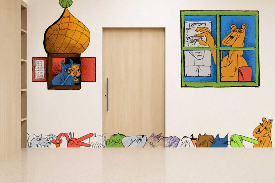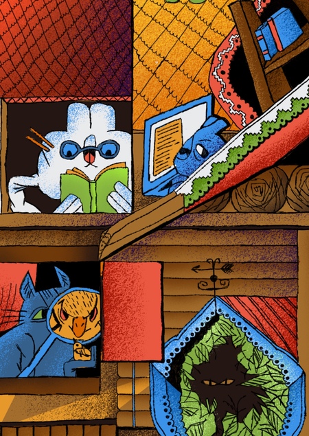 мне было важно показать практичность иллюстраций, поэтому я разделила теремок на блоки, который может собираться в целую композицию и разбираться на отдельные секции