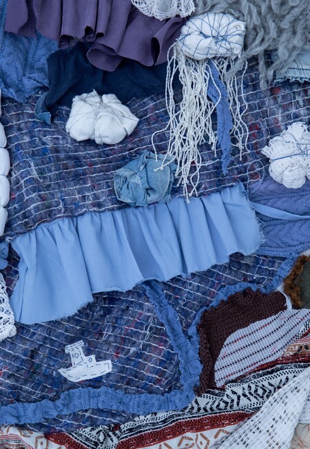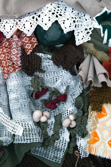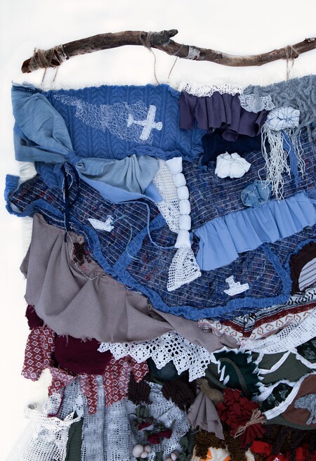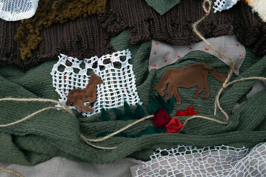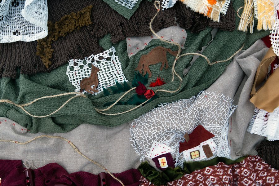 Для создания проекта использовались только те ткани, которые я смогла найти у бабушки в деревне. Каждый лоскуток хранит свою историю: будь то кусочек старой тюли, выцветшая рубашка или кружевной воротничок, — всё это свидетели прошлого, в которые получилось вдохнуть новую жизнь. Именно благодаря этим материалам, пропитанным духом времени и теплотой бабушкиного дома, панно смогло обрести особое чувство сопричастности с миром утраченного.