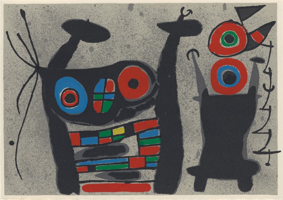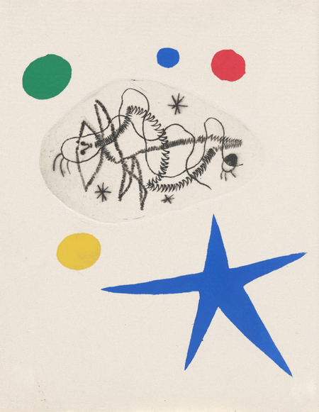 Ироничность сближает работы Хоана Миро с работами Пауля Клее. Они оба хотели раскрыть тайные смыслы реальности. У них схожее отношение к линии. Клее любил использовать непрерывную, мелодичную линию, которая свободно струилась подобно музыке. Линия у Миро то прямая, то изогнутая, то сворачивается и создаёт контуры фигур. Пол Клее в считал, что линия — это точка, отправившаяся на прогулку, а рисунок — запись становления формы. Для Клее знак не был готовым предметом, а был процессом. У Миро знак тоже живой: звезда, глаз, птица, абстрактная фигура появляются в разных книгах и гравюрах, каждый раз немного меняясь, но оставаясь узнаваемой «фонемой» его языка. Сопоставление с идеей синтеза искусств и простых форм позволяет увидеть в livre d’artiste Миро не только сюрреалистическую игру, но и систематическую работу с элементами визуального языка. Миро исследует базовые формы и цвета, последовательность, паузы, возвращения мотивов. Миро оказывается близок к Кандинскому и Клее, которые рассматривали линию, цвет и форму как носителей внутреннего звучания и неслучайного ритма. Миро вкладывает в свои работы поэтическую, почти мифологическую нагрузку, превращая их в повторяющиеся мотивы большого личного нарратива.