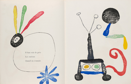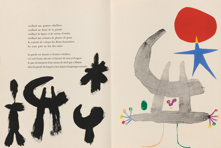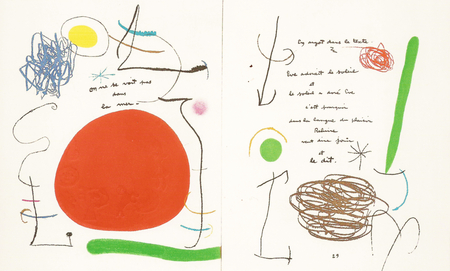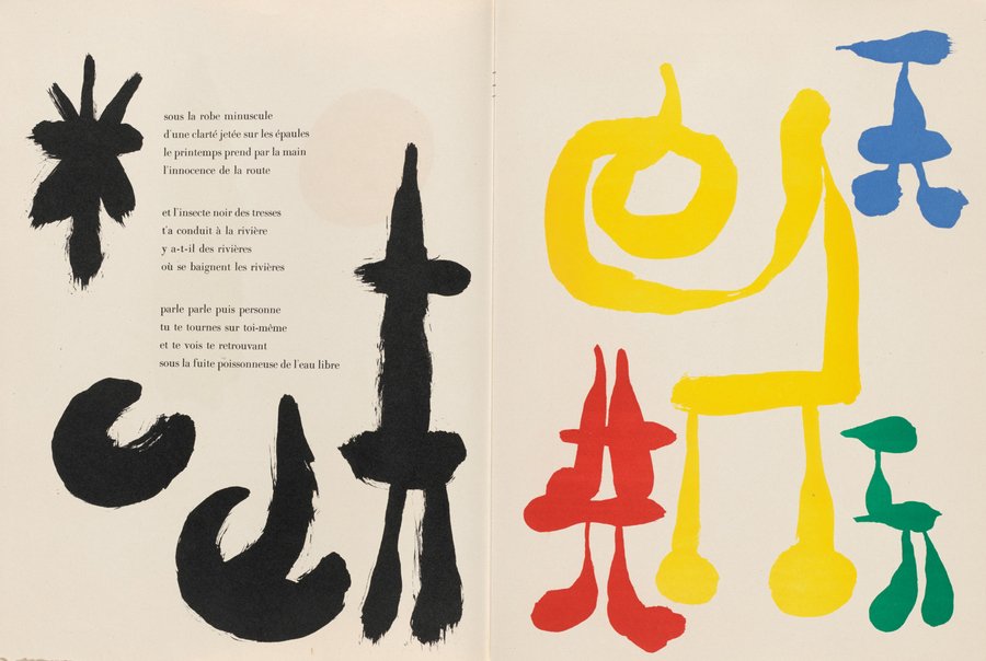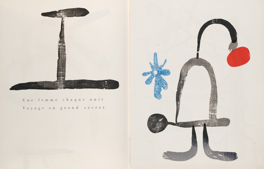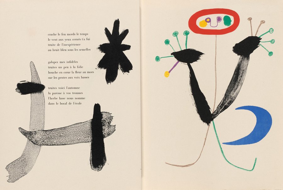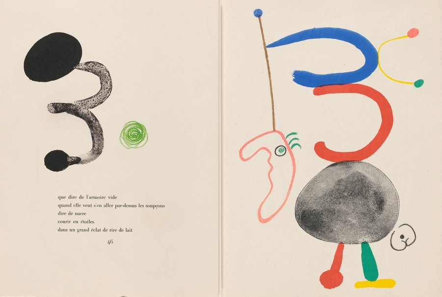 При первом взгляде на книги художника Хоана Миро, возникает двойственное ощущение. С одной стороны, иллюстрации выглядят почти детски просто: точки, звёздочки, пятна яркого цвета, дрожащие линии. Кажется, что это свободный рисунок на полях рядом со стихами. Но при внимательном рассмотрении становится понятно, что Миро работал не как иллюстратор, а как поэт, который писал не буквами, а цветами и линиями. Изображения не поясняют текст, они создаёт собственный ритм и настроение, как параллельная поэтическая строка.
