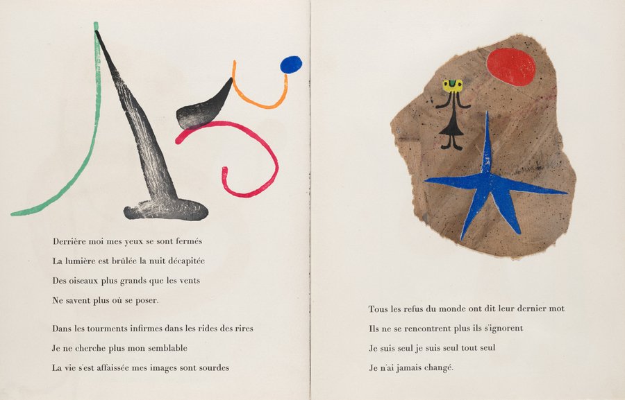 Livre d’artiste Миро представляют собой фрагменты единого, продолжающегося «визуального стихотворения», в котором повторяющиеся формы, цвета и линии играют роль рифм, мотивов и тем, перекликающихся между собой. А раз так, то Миро можно считать соавтором и поэтом, пишущим своё собственное глобальное произведение.