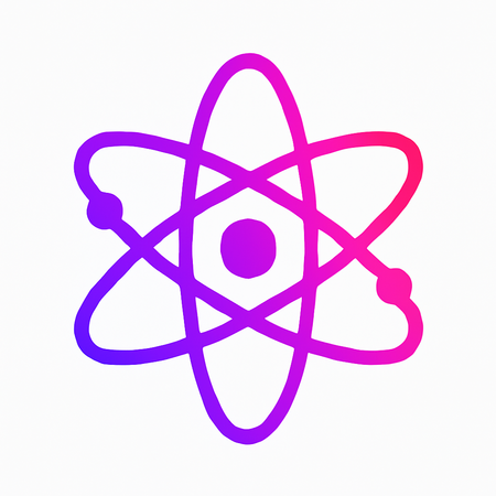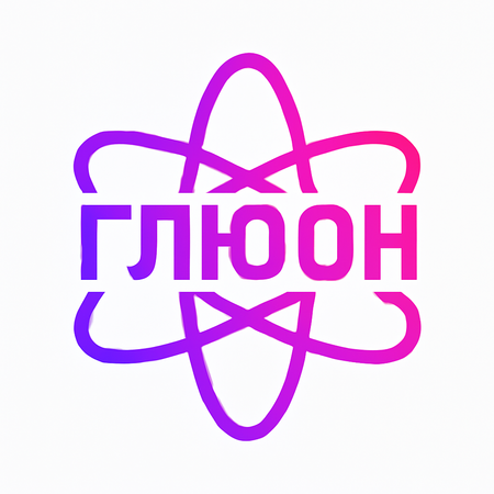 Промт для ChatGPT: An image of two logos in a five-color palette: white, black, hot pink, purple, and violet. Logo 1 on a white background depicts electrons orbiting a nucleus. Logo 2 is the same but with the inscription «ГЛЮОН» embedded in it.