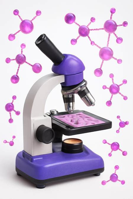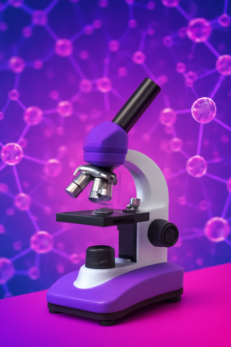 Промт для ChatGPT: Create two different advertising posters with a branded microscope and flowers, each from a different angle and directed at the subject.