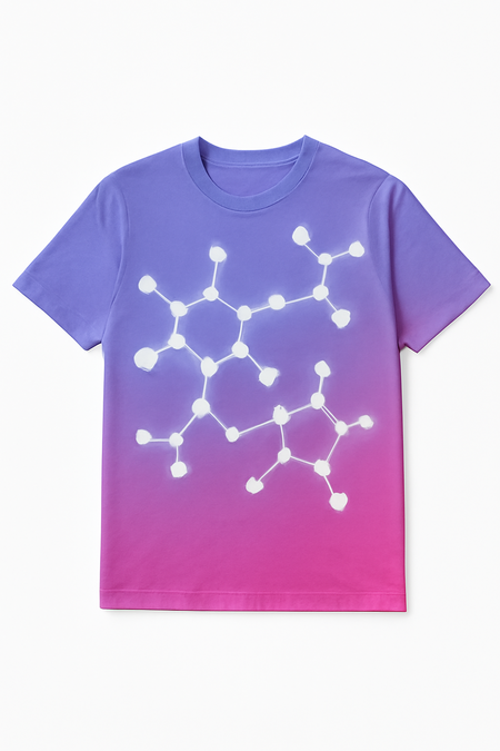 Промт для ChatGPT: Create a logo-less T-shirt featuring molecular bonds in your brand colors.
