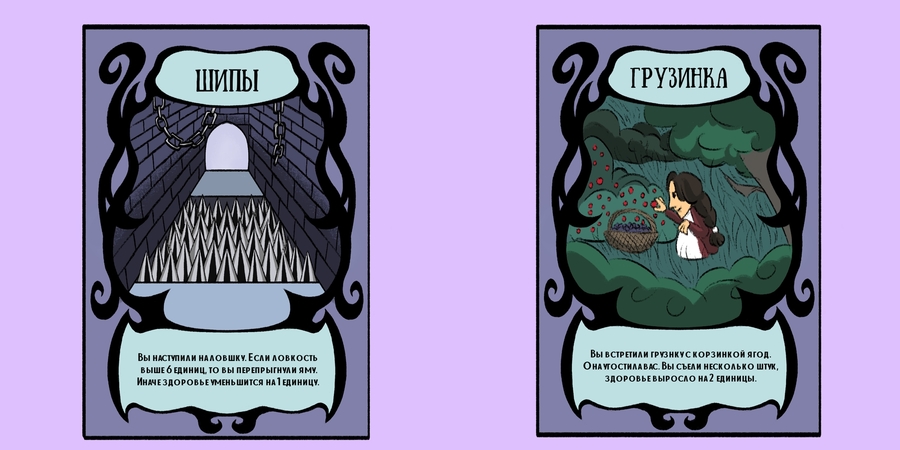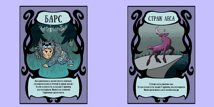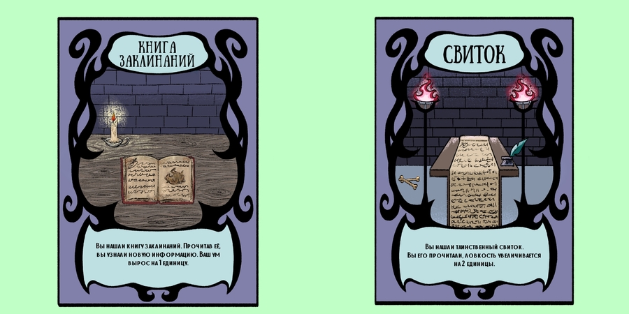 Карточки позволяют игрокам повышать свои здоровье, ум и ловкость, но также могут и потерять эти параметры. Игроки способны биться друг с другом, когда оказываются на одной клетке. В этом случае они тянут карточки с боевыми приёмами.