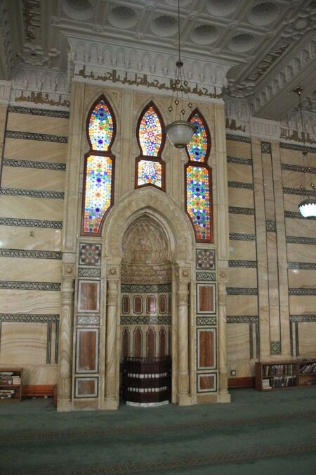 1. Ближневосточные михрабы обычно представляют собой глубокие ниши с полукруглым или стрельчатым сводом, акцентированно встроенные в стену мечети. Их оформление отличается строгой архитектурной лаконичностью: преобладают резьба по камню или штукатурке и минималистичная геометрическая орнаментика, дополненная арабской каллиграфией. Цветовая гамма сдержанная, а материалы — камень и мраморные вставки. Такой михраб остаётся визуальным и духовным центром молитвенного зала, но без излишней декоративной пышности, подчёркивая архитектурную структуру пространства.