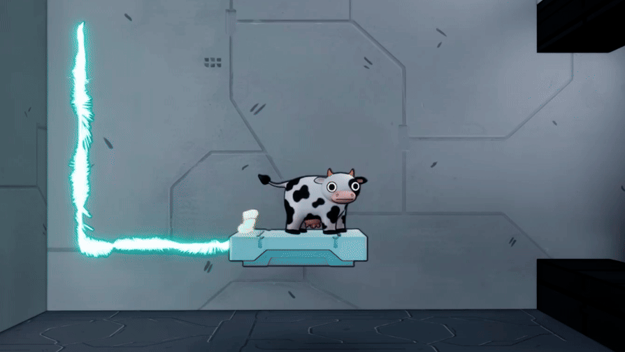 Бегай, прыгай, бодайся, стреляй молоком (у пришельцев аллергия на лактозу!) и активируй платформы мычанием.