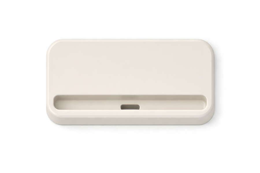 Конструкция: — цельный массивный клин — интегрированный упор под телефон — горизонтальный слот под кабель — без подвижных элементов