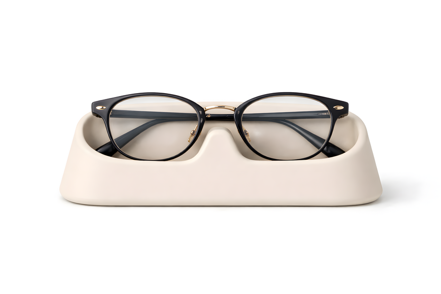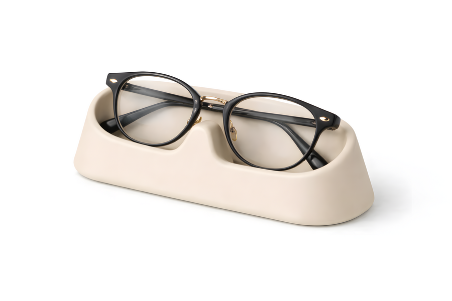 Описание Форма подставки повторяет анатомию очков, обеспечивая устойчивое и бережное хранение. Плавная геометрия предотвращает царапины и подчёркивает аккуратный характер серии.