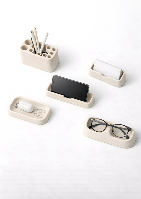 Проект «Модуль повседневности» — это серия практичных настольных объектов, предназначенных для организации предметов ежедневного использования.