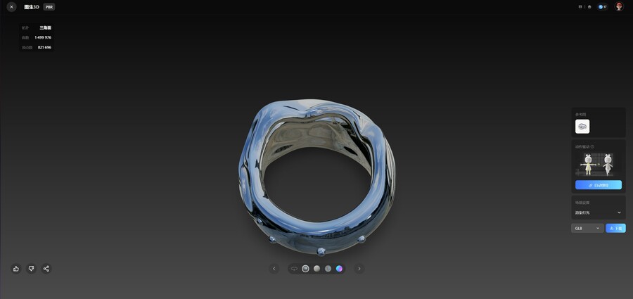 Кольцо 4: «Flow» (Течение / Волна) Описание: Кольцо с широким, динамично изогнутым ободом, напоминающим движущуюся волну. По поверхности разбросаны мелкие капли воды. Ключевые детали: Плавные, естественные изгибы; множество мелких, выпуклых капель; реалистичные отражения и блики. Требования: Все капли должны быть плотно прилегающими к поверхности и не создавать дискомфорта при ношении. Внутренняя часть — полированная.
