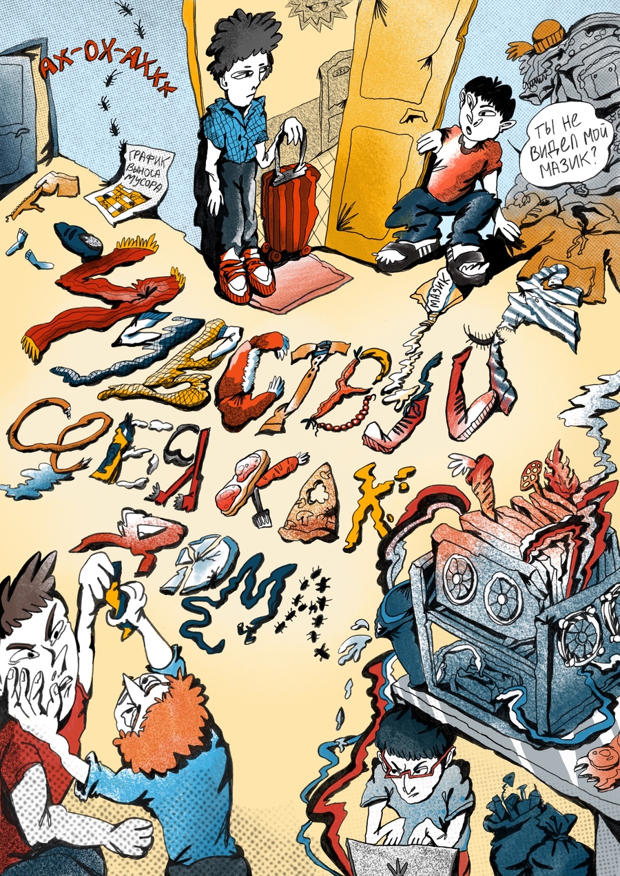 Серия комикс-плакатов о жизни студентов в общежитии.