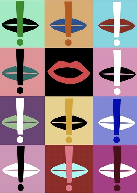 В качестве узнаваемого визуального знака обыгран жест молчания: указательный палец, приложенный к губам.