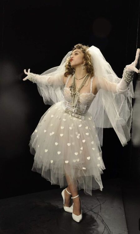 Появившись на музыкальной сцене в начале десятилетия Мадонна сразу же поменяла привычный порядок. В эпоху, когда женственность в поп музыке была либо утонченной, либо романтической, она выстроила новый тип образа — уличный, дерзкий, собранный из элементов субкультур. Ее ранние костюмы с кружевными перчатками, рваными колготками, огромными крестами и поясами, браслетами были собраны из дешёвых аксессуаров, но выглядели как призыв к свободе. В клипе Like a Virgin в 1984 году Мадонна в белом платье напоминающем свадебное сочетает невинность и провокацию и этим жестом как бы открывает новую эру феминизма в моде, где женщина сама решает, как себя показывать.