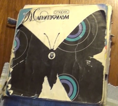 «Аквариум» — «Радио Африка». Коробка катушечного магнитоальбома с обложкой Андрея Усова и самой плёнкой внутри.