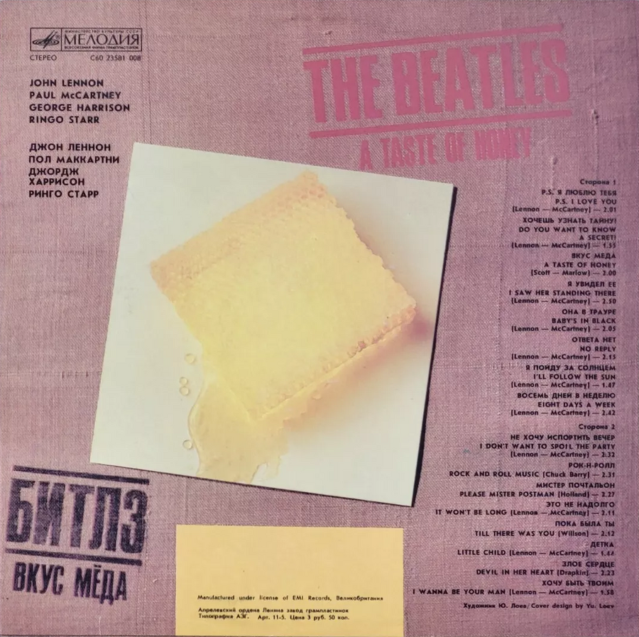 The Beatles — «A Taste Of Honey». Советское издание фирмы «Мелодия», 1986 год. Официальный, «безопасный» формат западного рока в СССР.