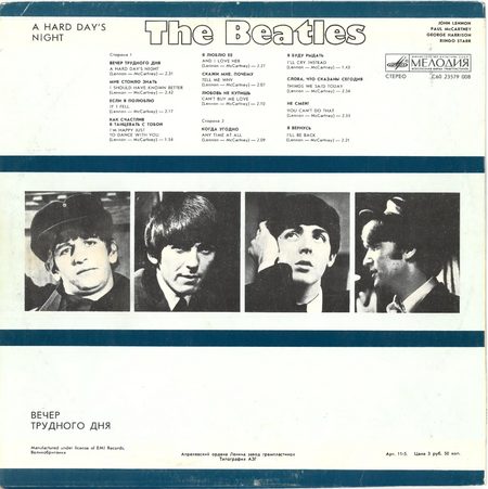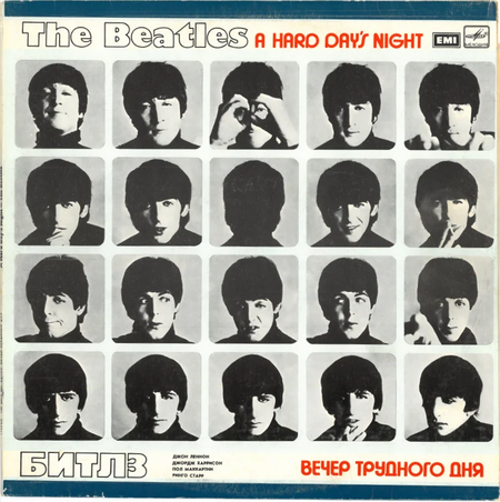 The Beatles — «A Hard Day’s Night». Переиздание фирмы «Мелодия», 1986 год. Характерный пример сдержанного советского оформления западного рок-альбома.