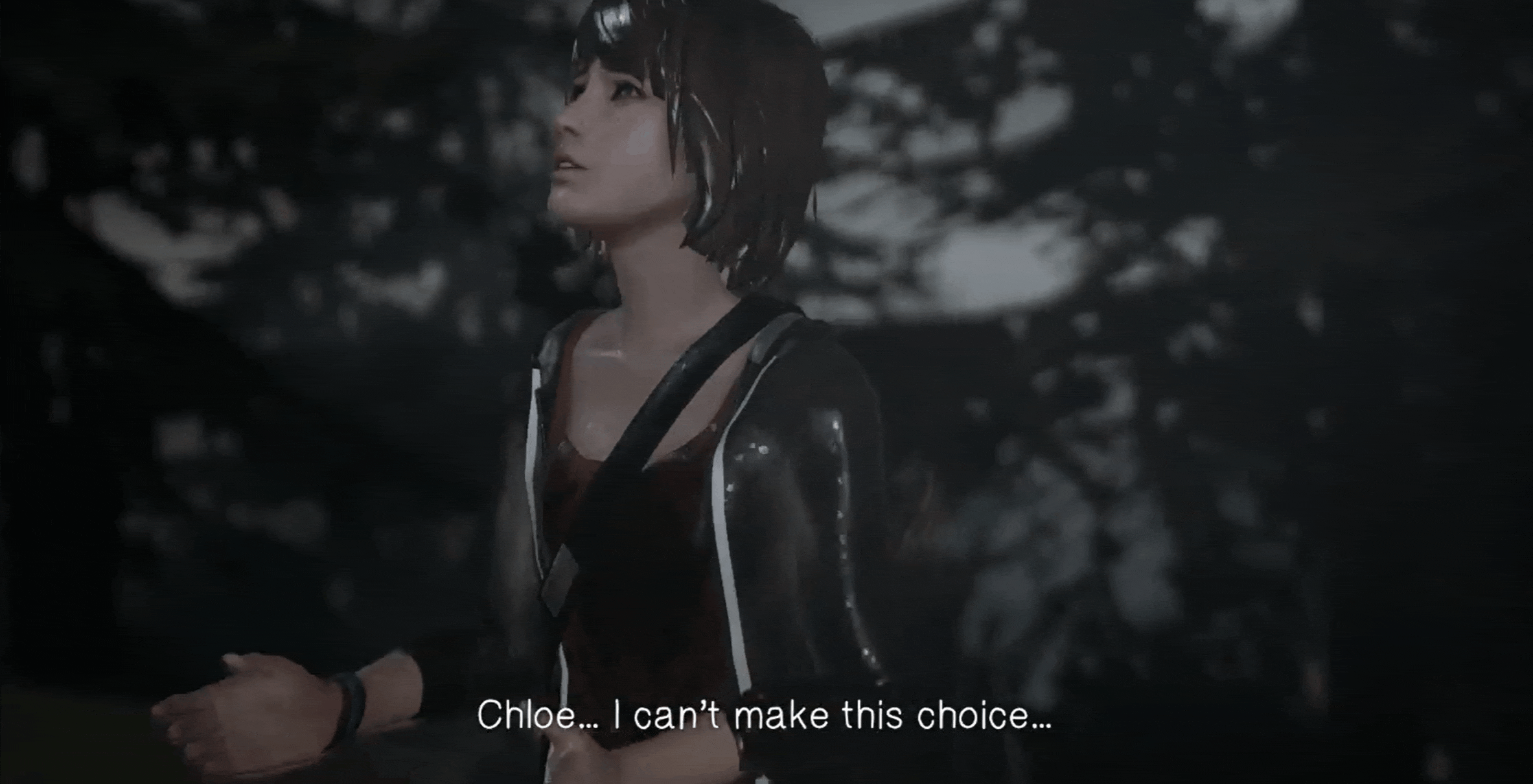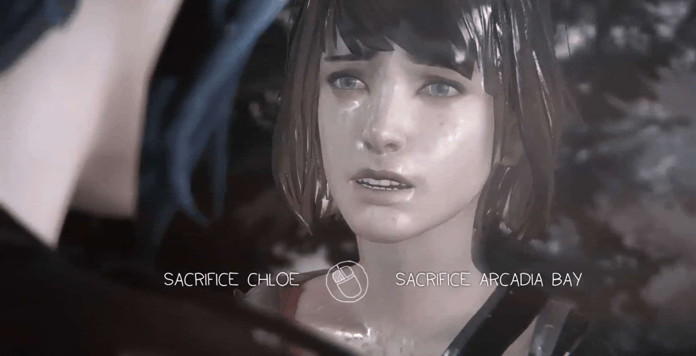 В кульминационном эпизоде игроку предстоит принять решение, которое навсегда изменит мир игры: пожертвовать подругой Хлоей или целым городом Аркадия-Бэй. С визуальной точки зрения эпизод оформлен драматично. Ливень, гром, молнии, отражающиеся в лицах героинь. Именно к этому выбору идет весь сюжет игры. Игрок привязывается как к городу, так и к Хлое, и теперь ему надо сделать моральный выбор. И основное отличие от классической игры типа Agôn в том, что нет как таковой победы. Нет правильного варианта, только тот, который ты чувствуешь. И игрока по итогу вознаграждают различными концовками в зависимости от выбора, где ни одна из них не показана как более или менее предпочтительная.