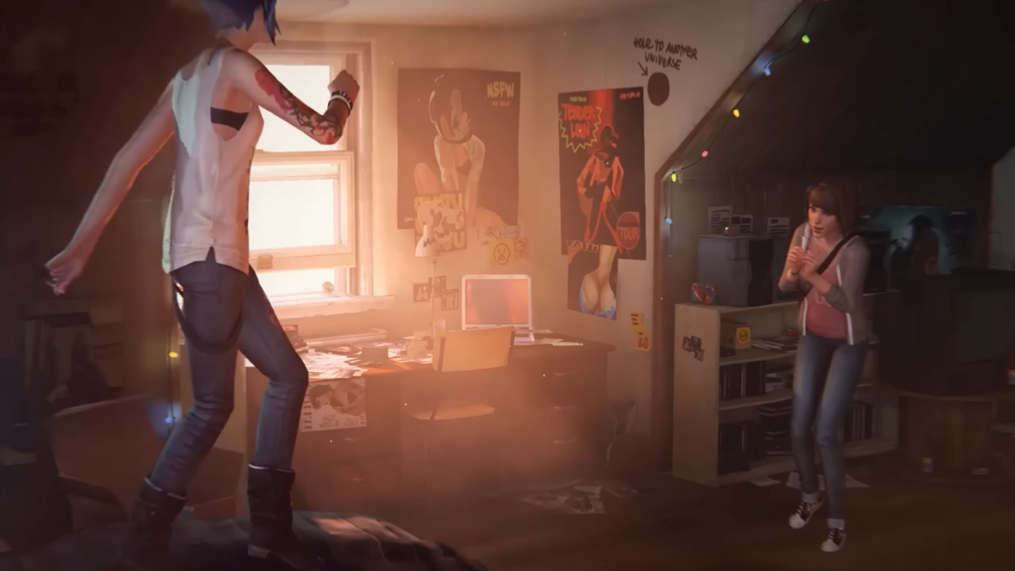 В Life is Strange mimicry работает через то, как игра даёт прожить роль Макс — тихой, наблюдательной студентки и фотографки. Нелинейность сюжета здесь — не только про исходы событий, но и про конструирование её характера: поддержать ли Кейт, влезть ли в конфликт, признаться ли в чувствах, рискнуть ли ради Хлои. Эти решения не всегда радикально меняют фабулу, но меняют образ, в котором игрок проживает историю. Визуально mimicry поддерживается дневником, полароидными фотографиями, нарисованными на экране стрелочками и подписями — интерфейс сам стилизован под визуальный язык Макс. Игрок «влезает в её голову» не только через сюжет, но и через способ, которым игра оформляет её взгляд на мир: мягкий свет, фильтры, медленные панорамы по комнате, заполненной личными вещами.