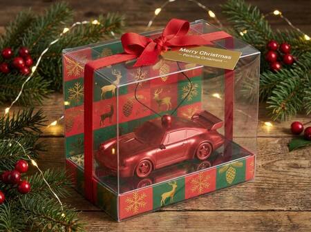 Nano Banana prompt: 1. Make some Christmas packaging for a little christmas tree toy by porsche 2. Make this little toy porche on the tree