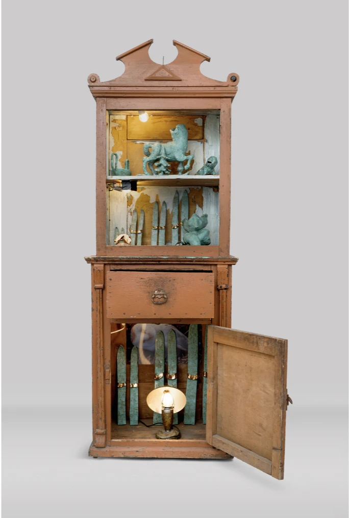 Ирина Корина, Шкаф с лыжами. Из проекта «Таяние», 2023; Найденные объекты, смешанная техника; 70 × 180 × 70 см; коллекция Зои Галеевой (ZBG Collection)