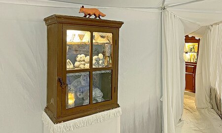Она использует предметы, найденные на блошиных рынках и дома, подчеркивая связь памяти индивидуальной и собирательной, общей. Ирина Корина помещает знакомые каждому «артефакты» (игрушки, детские лыжи, лампу) в пространство старого шкафа узнаваемой формы. Это отражение характерного для художницы подхода к созданию пространств, где личные воспоминания переплетаются с общими культурными кодами, приглашая зрителя к размышлениям о времени, памяти, трансформации — и, конечно, о детстве.