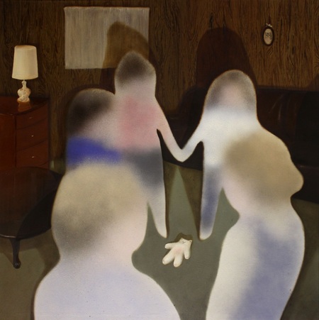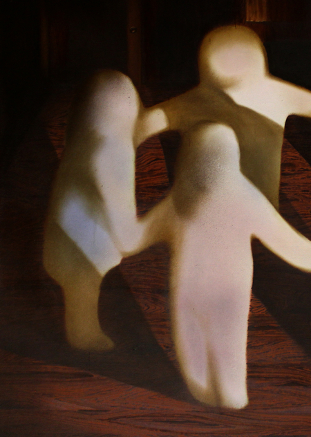 Это фантазийный мир девочки, глазами которой реальность превращается в антропоморфное, наделённое памятью и чувствами пространство. Мир вещей, хранящих воспоминания, смыслы, страхи и добрые намерения, отсылающих к детским страхам, игре в прятки, потере и взрослению. Каждая картина наполнена лёгкой зыбкостью и словно населена «духами дома», которые уходят, когда для них больше нет места. Через расплывчатые, будто бы приглушённые образы художник создаёт пространство вне времени, где память и воображение сливаются в одно.