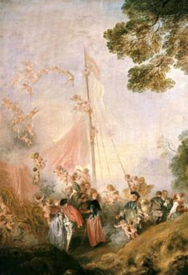Уникальный памятник стиля — картина Антуана Ватто «Паломничество на остров Киферу». Её пластика и настроение воплощают зарождающуюся эстетику «галантного празднества» (fête galante). На полотне изображены пары в изящной атмосфере между мечтой и реальностью.