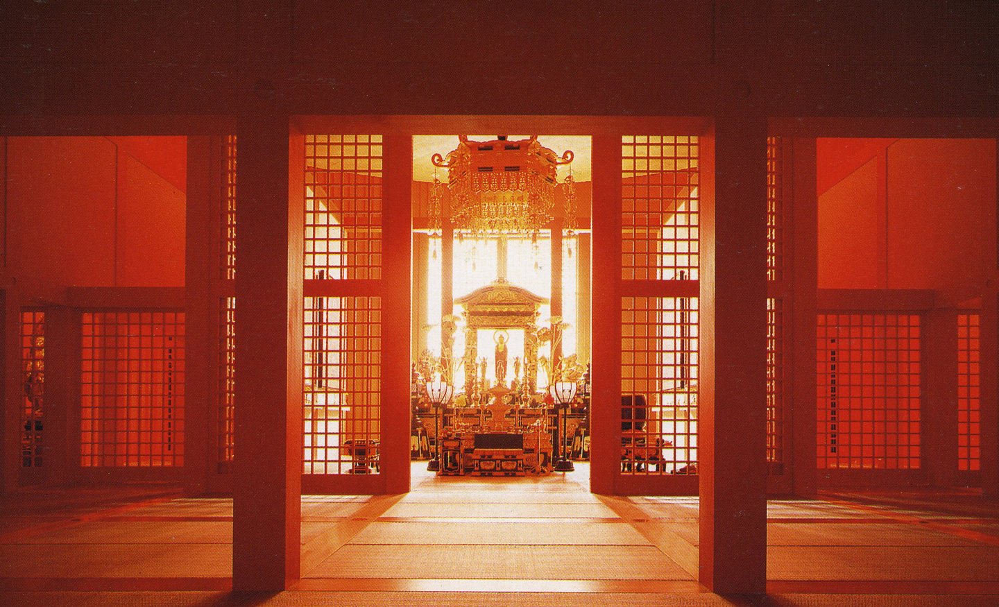 Храм воды Хомпукудзи, расположенный недалеко от моста Акаси Кайкё, представляет собой сооружение с наземным входом, ведущим по узкой дорожке через белый гравий к подземному пространству под круглым резервуаром с цветущими лотосами. Драматический переход во внутренний мир храма подчёркивается ярко-оранжевым алтарём и игрой света, особенно заметной летом, когда солнечные лучи пронизывают алтарь и оживляют статую Будды.