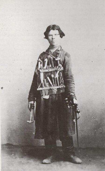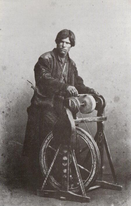 Примеры работ В. Каррика, слева — Торговец инструментом, 1878 г., справа — Точильщик ножей, 1878 г.