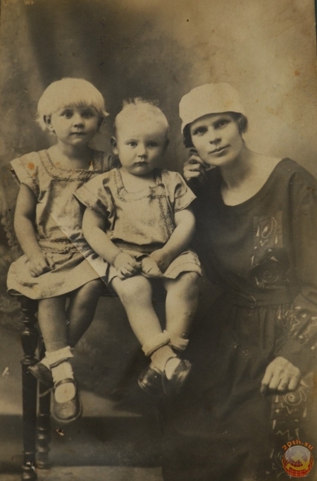 Слева — дети с мамой, фото в ателье, 1930-е годы, справа — сельское фото в районном фотоателье. 1950-е годы.