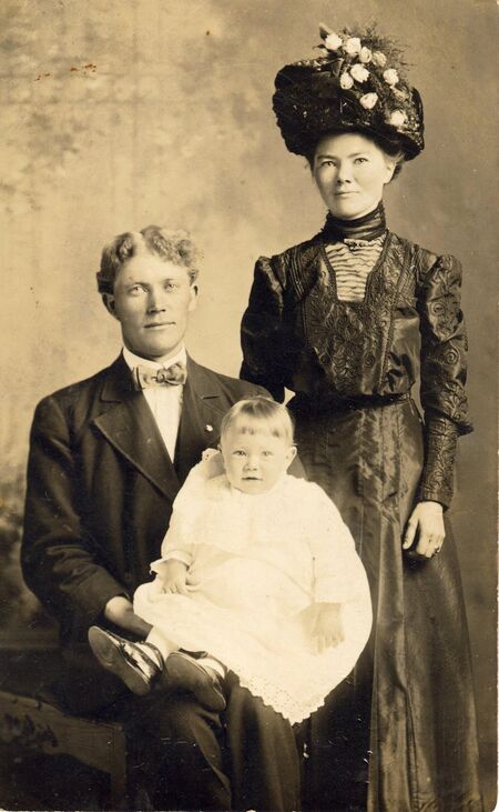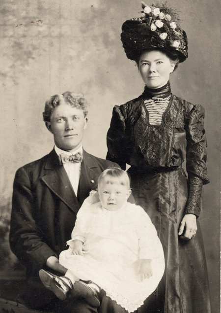 Слева — пример семейных фотопортретов XX века (до 1945), справа — Афанасий Лапшов с женой Эрерой и сыном Владимиром.