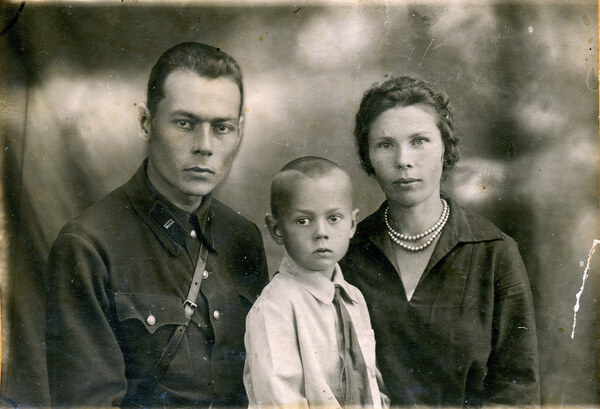 Слева — советский офицер с женой и сыном, до 1941 г., справа — Комиссаров Степан Николаевич с семьей.