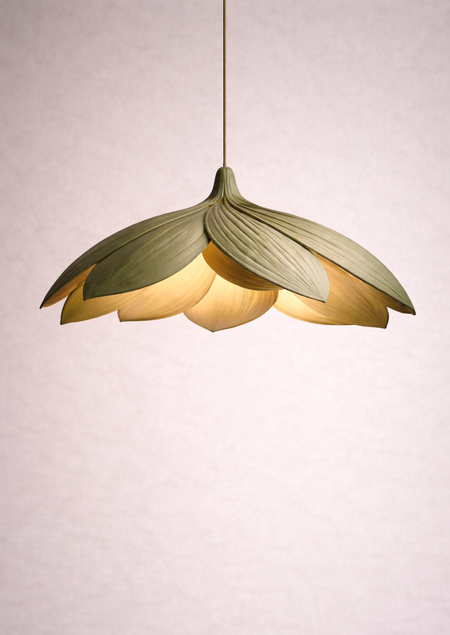 Подвесной светильник выполнен в виде плавно изогнутой формы, напоминающей нависающую крону дерева или лист, пойманный в моменте движения. Лёгкость конструкции и мягкий контур создают ощущение парения, а направленный вниз свет формирует комфортное и естественное освещение, подобное рассеянному свету под пологом леса.