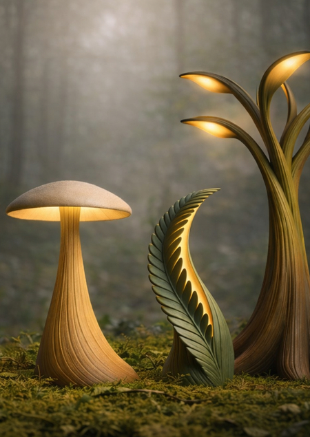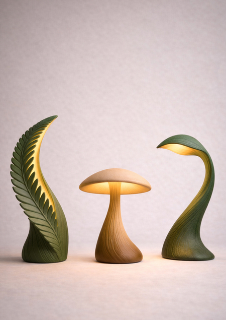 Серия интерьерных светильников, вдохновлённых формами леса: ростом растений, изгибами ветвей, грибами, листьями, мхом. Каждый объект — будто живой организм, выросший из одной почвы.