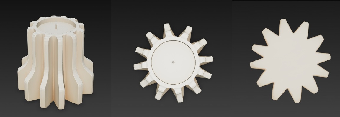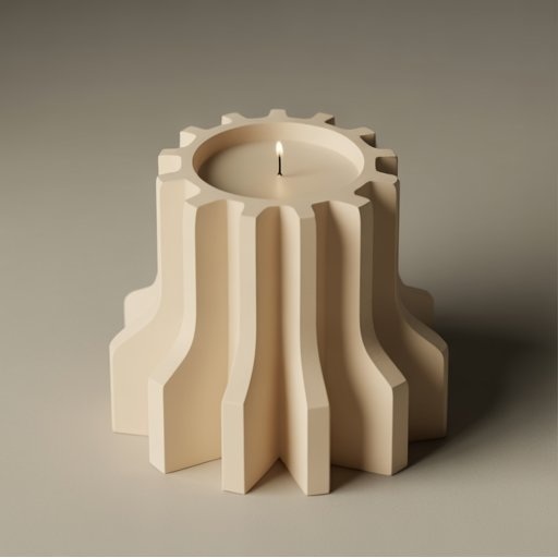 Промпт использованный для создания изображений (на примере подсвечника со свечой): A modern minimalist household object designed specifically for 3D printing, part of a cohesive design collection. Clean geometry, smooth continuous surfaces, readable silhouette, thick walls, manufacturable proportions, no thin or fragile details. Design emphasizes form shaped by additive manufacturing, neutral matte material, realistic scale, soft studio lighting, plain background. The object must look like a real physical product, not a concept sculpture. Object type: candle holder Object description: A modern candle holder designed for 3D printing, thick walls and solid base, vertical relief patterns creating expressive light and shadow, minimalistic yet sculptural form, safe and stable proportions, designed for a single candle, emphasis on silhouette and shadow interaction, contemporary interior decor object, industrial design sketch, matte ceramic-like material, soft dramatic lighting, neutral background