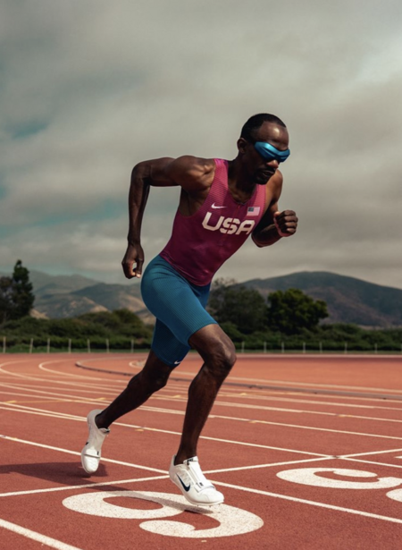 Форма шрифта вдохновлена шипами, которые находятся на подошве обуви для легкой атлетики, и движением спортсменов при беге