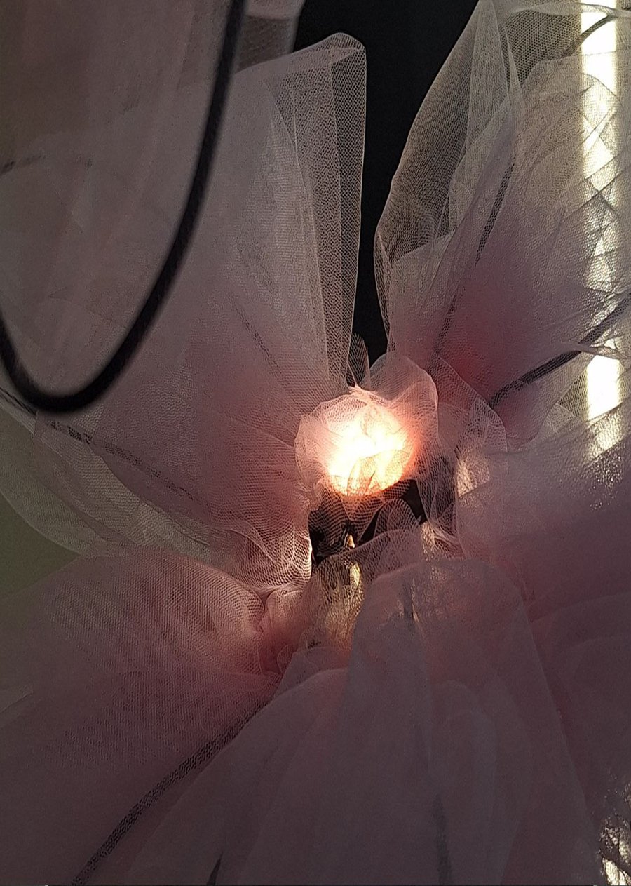 «Свет Ланвен» — арт-объект, основанный на истории жизни и творчества известного модельера Парижа двадцатого века. Родилась художница в небогатой семье, и в подростковом возрасте зарабатывала доставкой шляпок.Этот опыт зародил в ней любовь к моде, благодаря чему, впоследствии, она открыла собственный магазин. Одним из главных поворотных моментов в её судьбе и карьере стало рождение дочери. Именно для неё Жанна сшила первые наряды, которые настолько понравились другим дамам, что, по их просьбе, Ланвен воссоздала их уже во взрослых размерах. Став первым модельером, воплотившим идею парных образов для дочери и матери, Жанна Ланвен прославилась на весь мир, а на логотипе её бренда зафиксировался образ её самой, держащую за руки Маргарет.